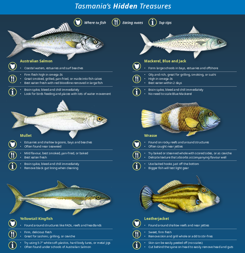 Tasmania’s waters are home to a rich diversity of fish species — some well-known, others often overlooked. By embracing a “mixed bag” approach, fishers can spread fishing pressure more evenly across healthier stocks, helping to support long-term sustainability while adding variety and challenge to their fishing trips.